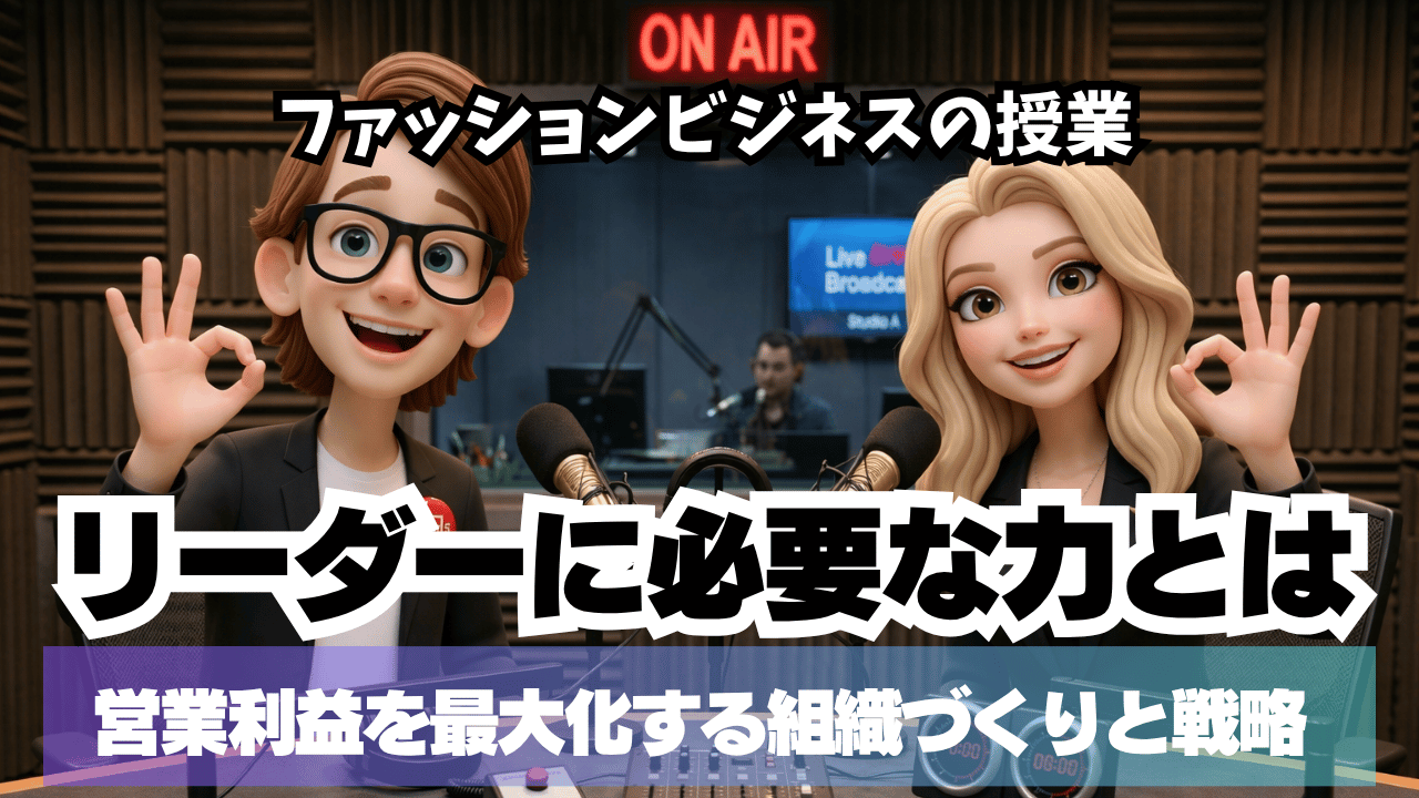 今回のテーマは「リーダーに必要な力とは」です。リーダーシップと聞くと、圧倒的なカリスマ性やセンスで「俺についてこい!」と力強く引っ張る姿を想像するかもしれません。しかし、これからのアパレル業界で本当に求められるのは、そうした一部の天才的な能力ではありません。大切なのは、チーム全体の力を引き出し、「人的生産性(スタッフ一人ひとりが生み出す成果の量と質のこと)」を高め、最終的にブランドが存続するための「営業利益」をしっかりと残す力なのです。どんなに素敵な服を作り、おしゃれな店舗を作っても、利益が出なければブランドは守れません。この講義では、現場ですぐに活かせる目標設定やコミュニケーションのコツ、Z世代が牽引するSNSを使った最新のマーケティング戦略、そして感覚に頼らず数字で評価するシビアな仕組みづくりまで、営業利益視点から具体的に解説していきます。論理的な手法と服づくりへの情熱を掛け合わせ、しっかり稼げて長く愛される強いチームの作り方を一緒に学んでいきましょう。